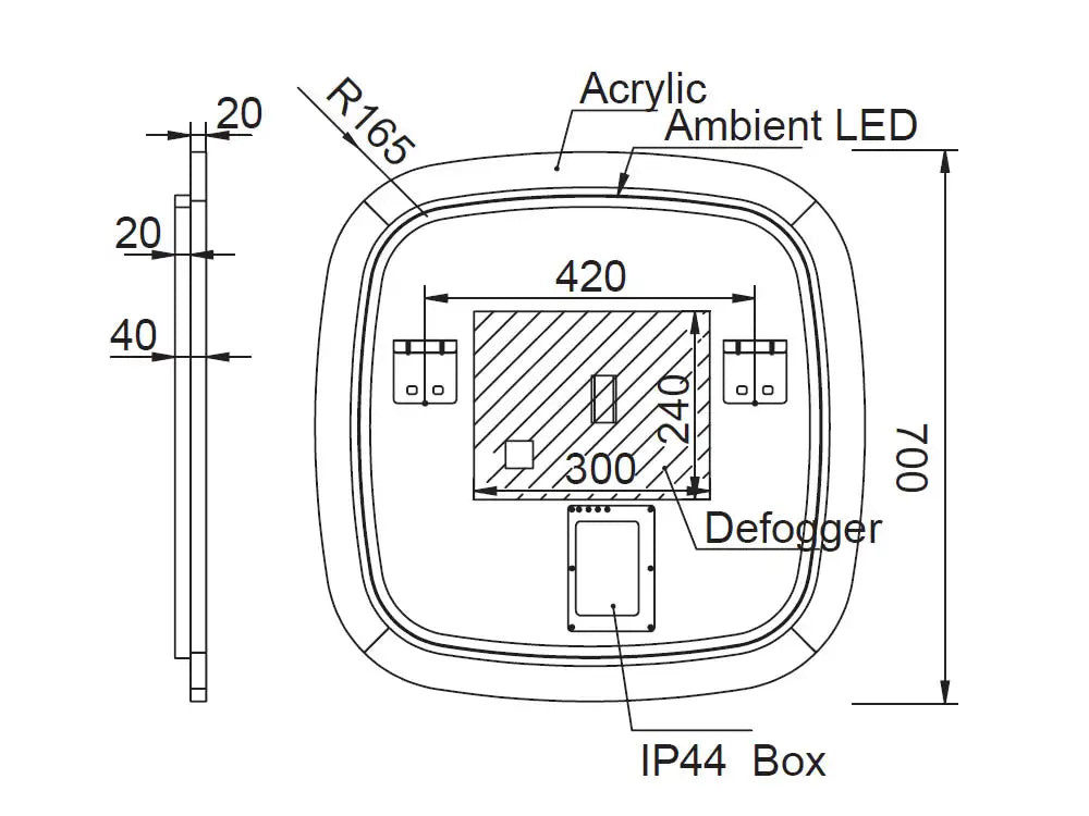 Φωτισμός LED: Περιμετρικός: 20W/2205 Lumen