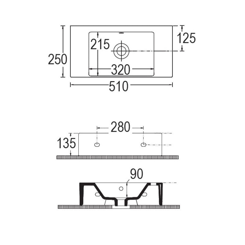 Σημείωση: 1 οπή | Βάθος γούρνας 9 εκ. Χωρίς υπερχείλιση