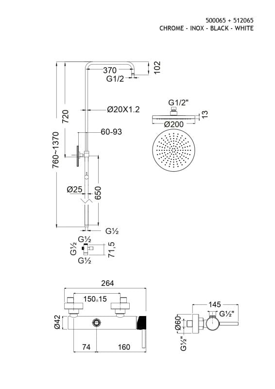 Περιγραφή: Ντουζιέρα 2 εξόδων με κολώνα ρυθμιζόμενου ύψους 76-137εκ.
