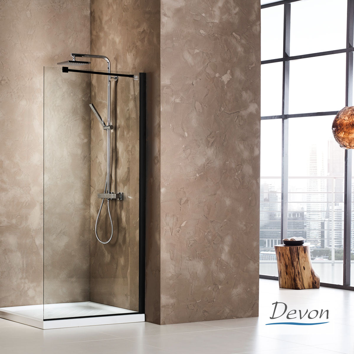 DEVON WALK-IN διαχωριστικό ντους, ύψος 185 εκ. με βραχίονα διπλής κλείδωσης 100εκ για στήριξη διαγώνια ή κάθετης στήριξης. Κρύσταλλο ασφαλείας 6 χιλ. με επεξεργασία Clean Glass